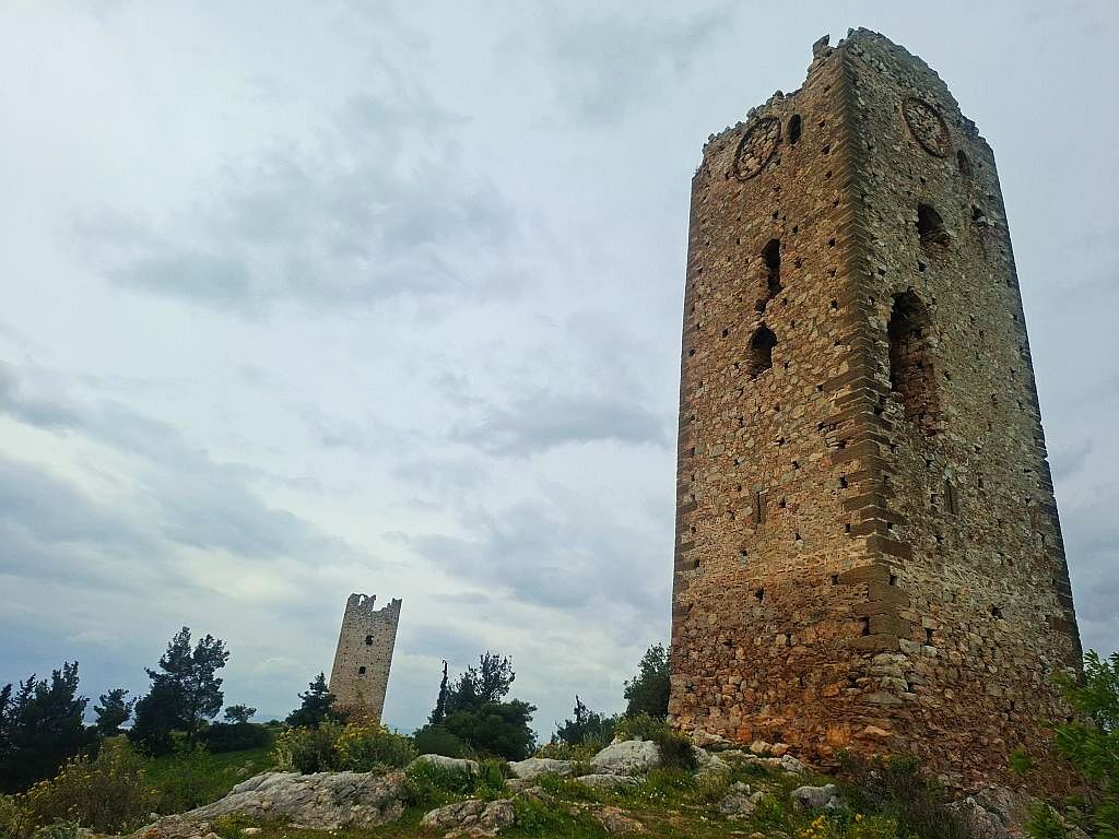 Dwie wieże stoją obok siebie w odległości zaledwie 6 km na południowy-wschód od Chalkidy.