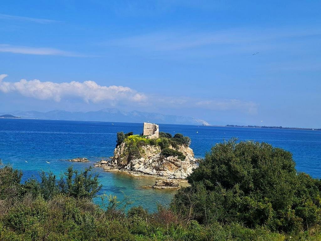 Położona na północy Evii, tuż przy plaży o tej samej nazwie, znajduje się wieża co do której przeznaczenia, wciąż istnieje kilka hipotez nawzajem się wykluczających. Wg jednej z teorii na małej wysepce Nisiotissa, znajduje się zamek zbudowany podczas okupacji osmańskiej.