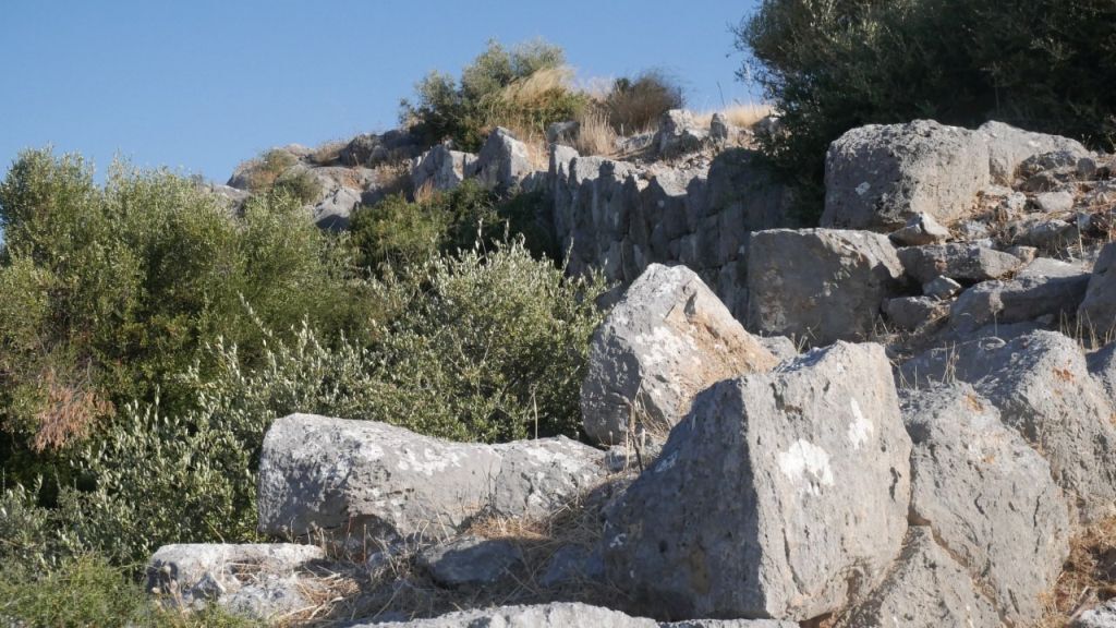 Na południowym zboczu akropolu odnalezione zostały pozostałości dwóch świątyń. Trudno dostrzec je "z dołu" gdyż nie są w żaden sposób oznakowane a szczątki murów choć wyraźnie zarysowane, giną pośród innych, naturalnych kamieni wzniesienia.