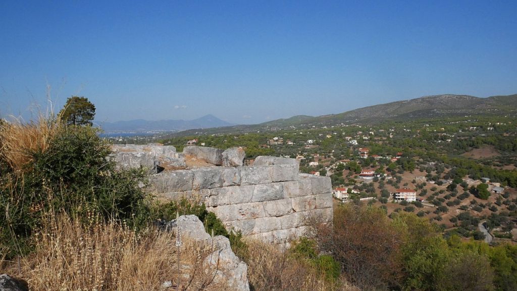 Znajdowały się tu dwie świątynie: jedna poświęcona Atenie, druga Demeter, co potwierdzają znalezione tu licznie resztki ceramiki i elementów wotywnych.