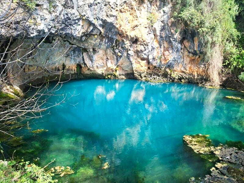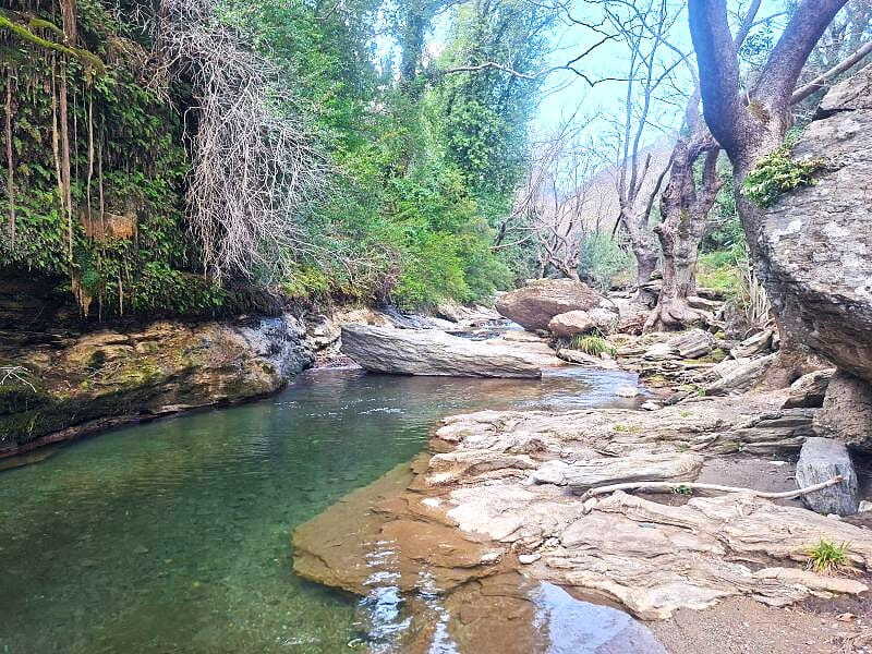 Kalethra to wodospad z oczkiem wodnym wśród zieleni. Fajnie, że znajduje się tuż przy drodze. Niestety zdarza się, że w upalne lato wodospad wysycha.