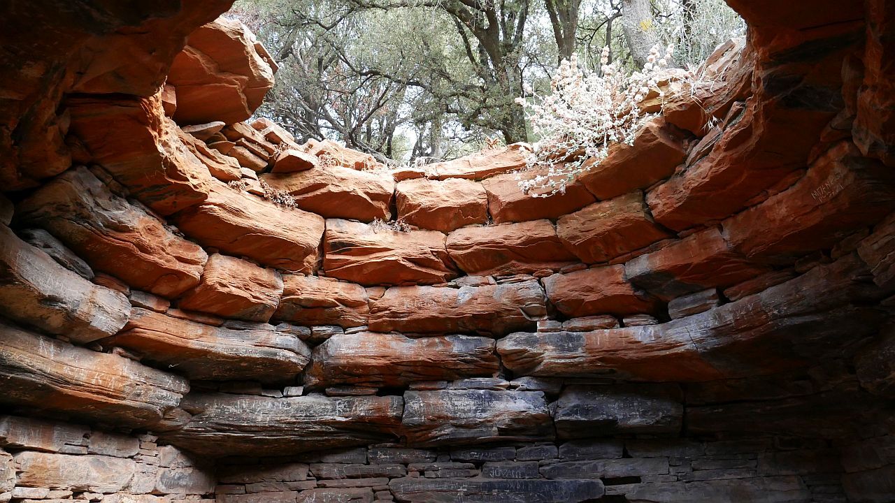 Nie jest łatwo je znaleźć. Dla ułatwienia dodam, że zarysy murów nie są widoczne w trakcie wchodzenia. Dopiero będąc ciut wyżej można je dostrzec.