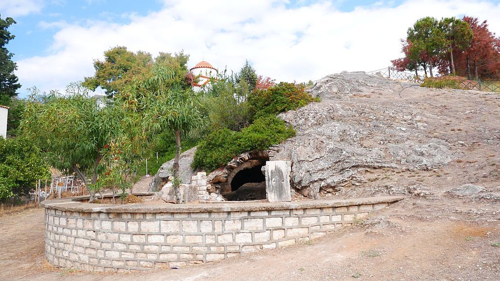 Grób macedoński znajduje się na wzgórzu na północny-zachód od miasta Eretria. Warto podjechać samochodem, gdyż jest to jeden z najważniejszych zabytków wyspy Evia.