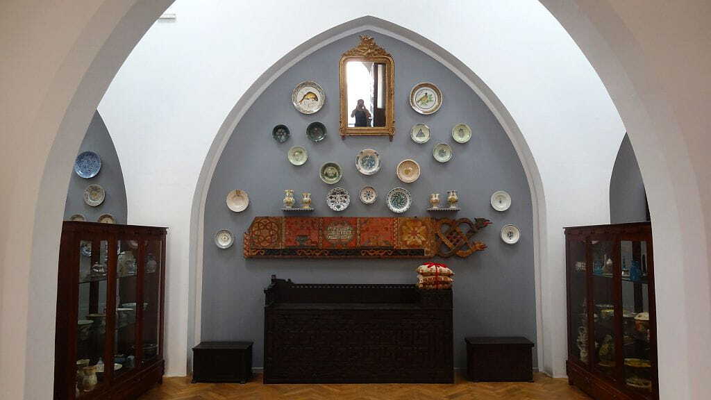 Na ścianach znajdują się stare mapy i ryciny przedstawiające miasto z czasów oblężenia i panowania Imperium Osmańskiego.